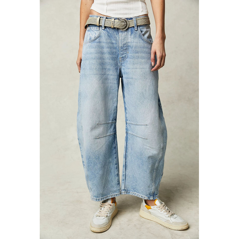 High Stretch Mid-Rise Barrel Jeans Fashion Wide Leg Shape Women Casual Baggy Mid Waist Denim Jeans Dark Blue L