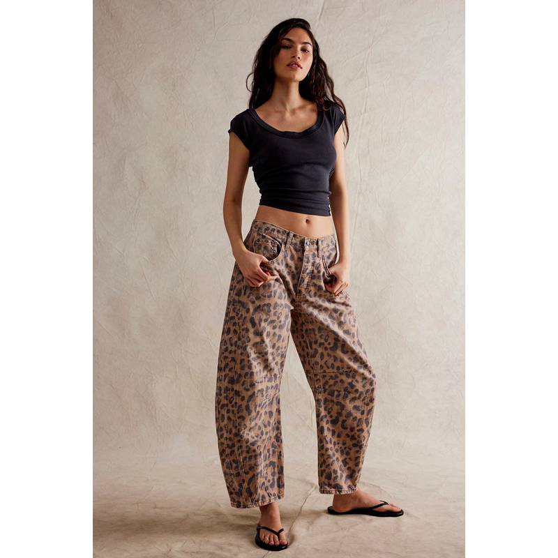 Loose legs, similar to straight or flared pants, suitable for various leg shapes, especially those with thick legs and O-shaped legs. The waist design is mid waist, which can elongate the leg lines and appear taller.