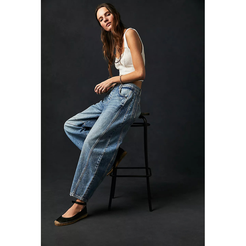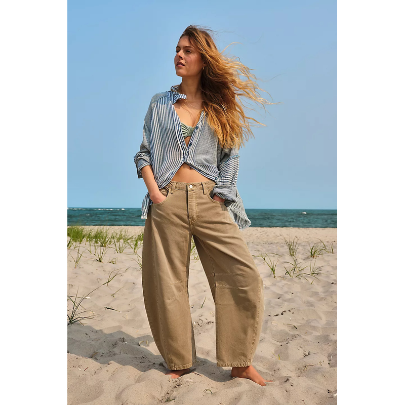 Loose legs, similar to straight or flared pants, suitable for various leg shapes, especially those with thick legs and O-shaped legs. The waist design is mid waist, which can elongate the leg lines and appear taller.