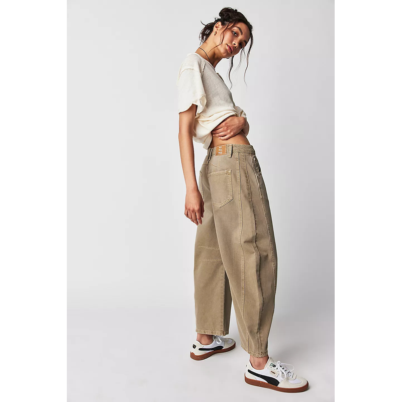 Loose legs, similar to straight or flared pants, suitable for various leg shapes, especially those with thick legs and O-shaped legs. The waist design is mid waist, which can elongate the leg lines and appear taller.