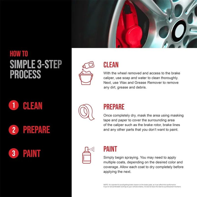 DIY Brake Caliper Paint - 2K Aerosol Spray Can Glossy Glamour Finish High Temp Resistance Black Yellow Blue Red Green Silver gold