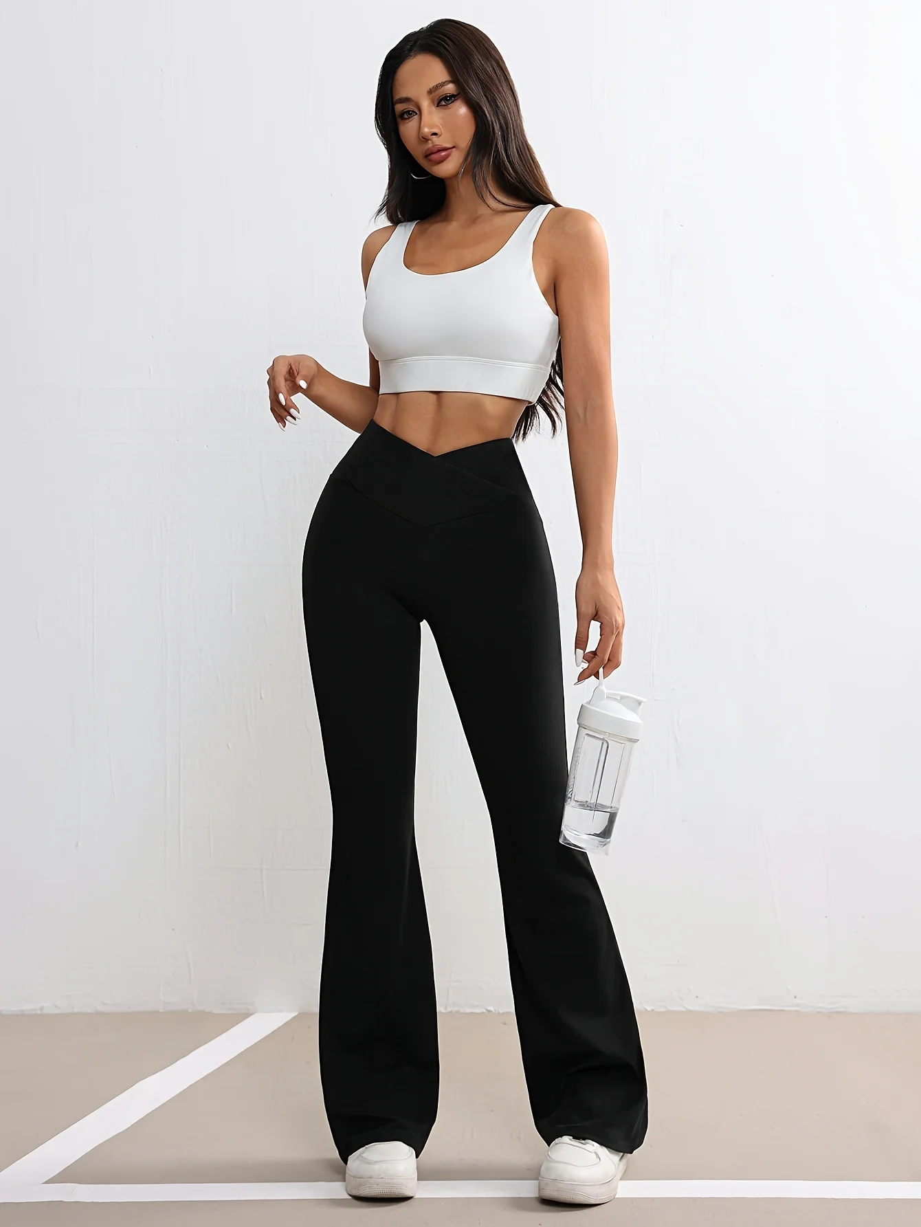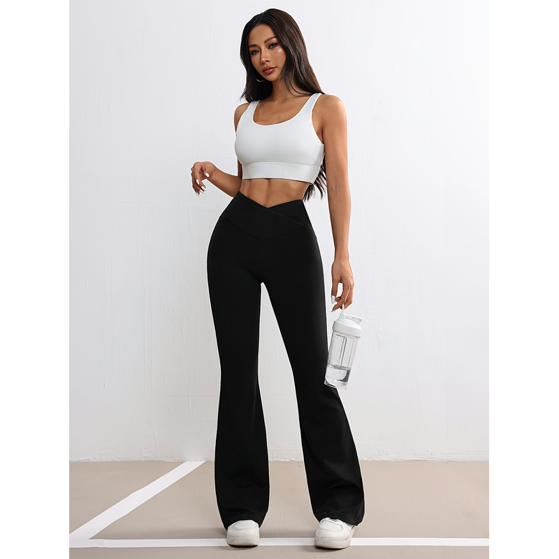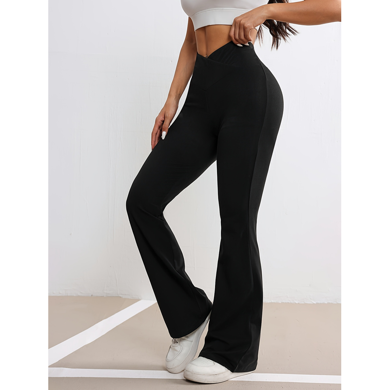 High Waist Crossover Flared Yoga Pants For Women V-waist Bootcut Workout Leggings, Stretch Casual Trousers For Gym Running