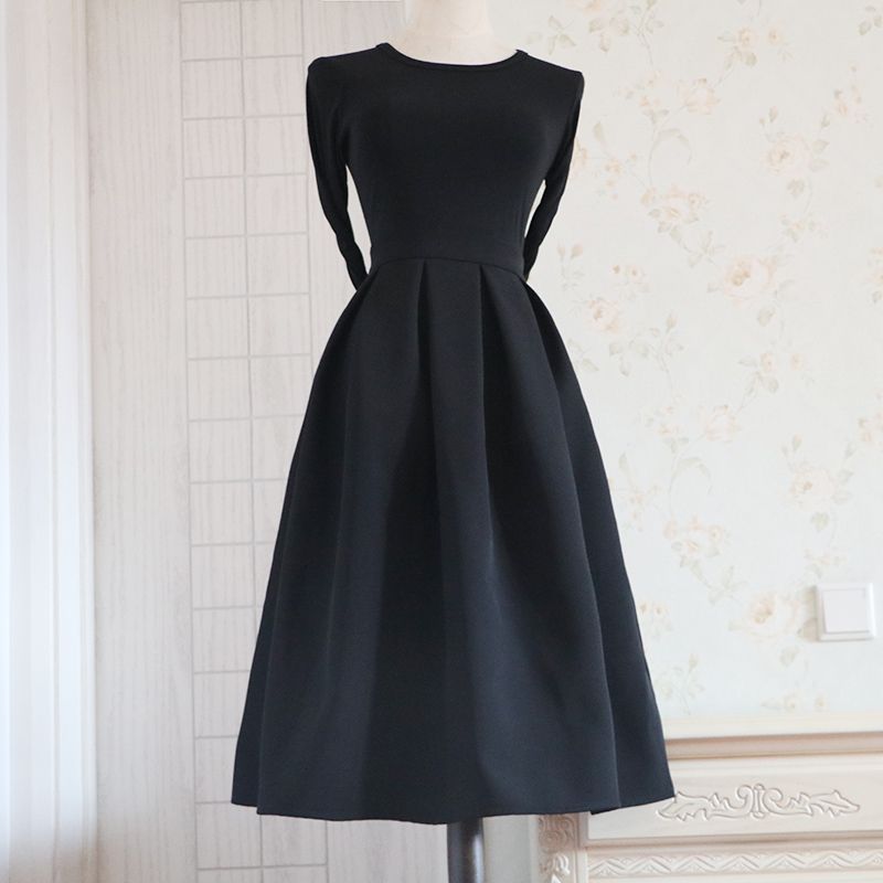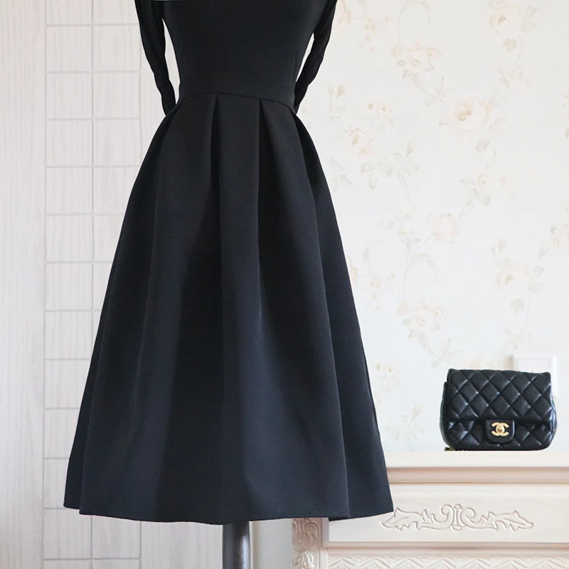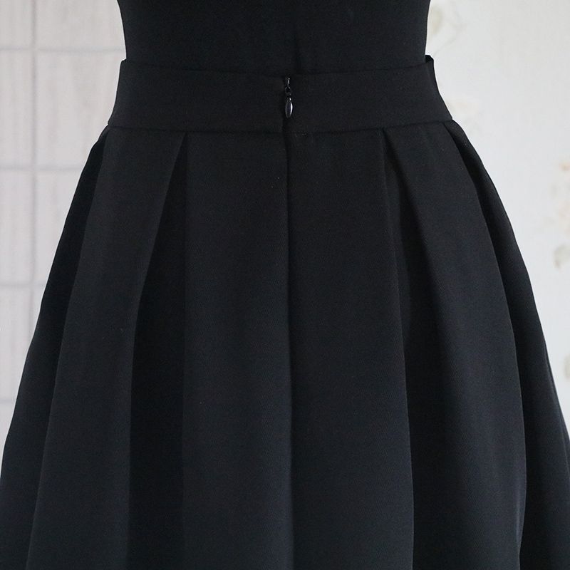 High Waist Midi Skirt Black A-Line Gored Gown Vintage Style Spring Autumn New Retro Fullness Polyester Fiber Casual Wear