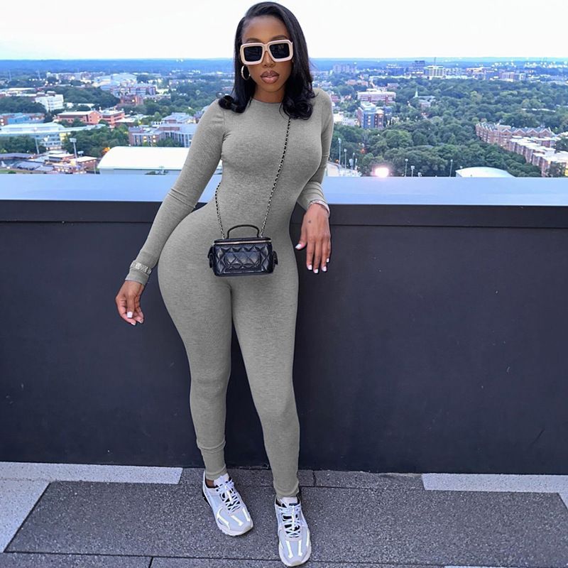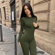High Waist Tight Sports Fitness Jumpsuit Brown S