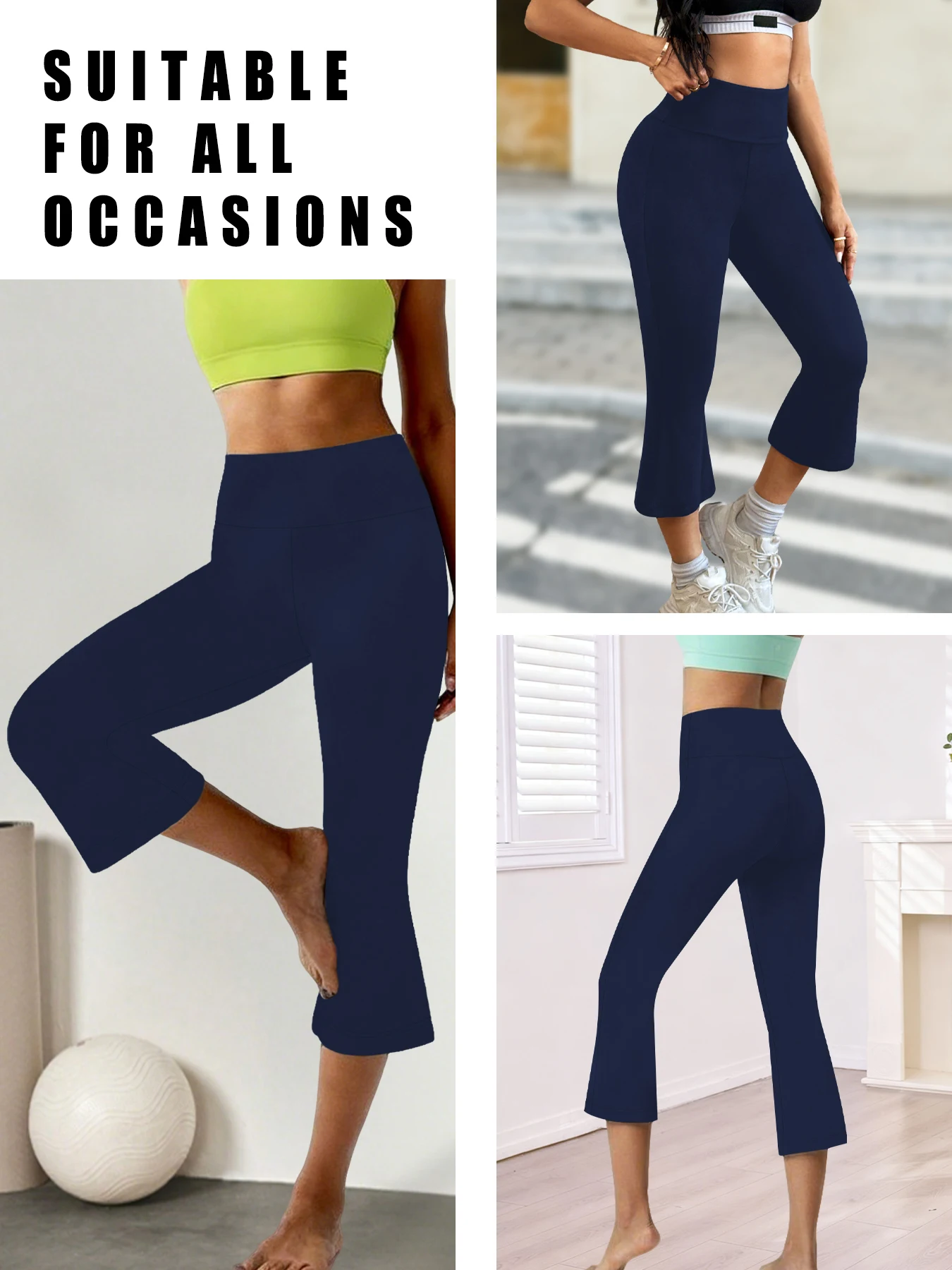 High Waisted Capri Pants For Women,Super soft Tummy Control Flare Leggings,Workout Running Yoga Athletic Leggings