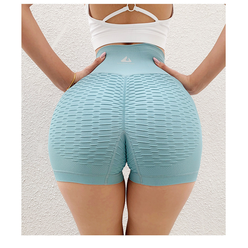 High-waisted Jacquard Peach Hip Yoga Three-quarter Pants Belly-up Hip High-elastic Shorts Tight Fitness Pants Blue L/XL
