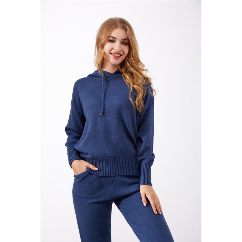 High Waisted Trousers Knitted Casual Suit Blue One Size