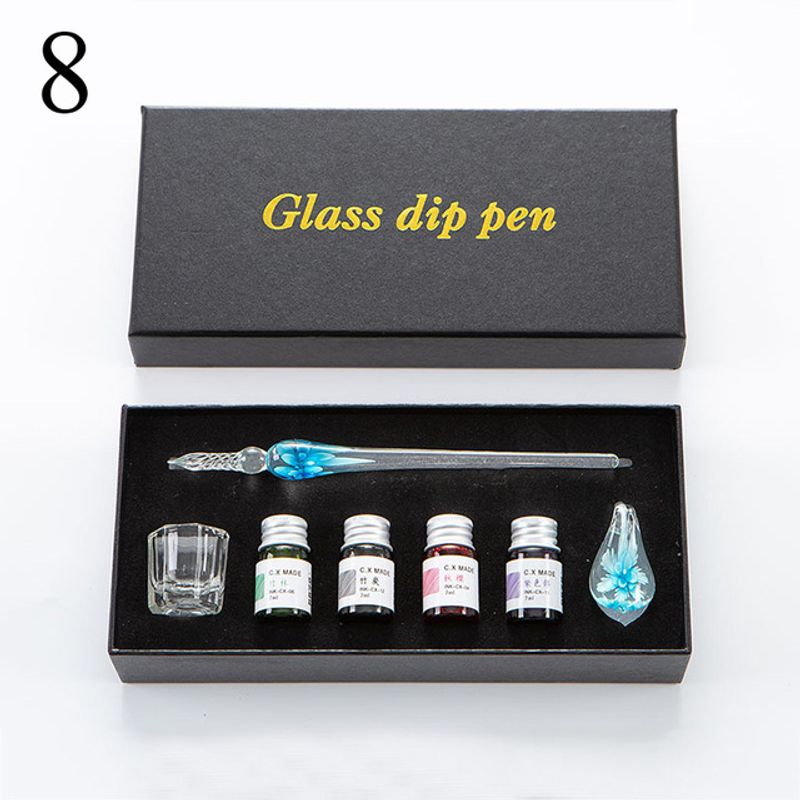 Highergo 3/7/15 Pcs 3D Flower Glass Pen Set Handmade Crystal Dip Pen With Ink For Drawing Calligraphy Kids Gifts Stationery
