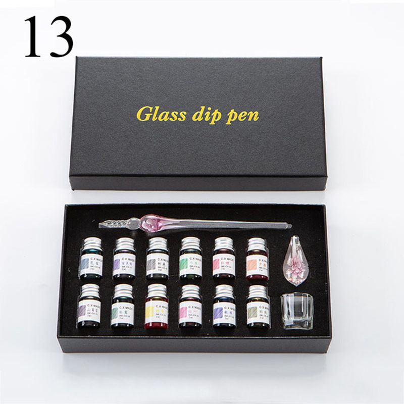 Highergo 3/7/15 Pcs 3D Flower Glass Pen Set Crystal Handmade Dip Pen Writing Drawing Calligraphy Gifts Stationery Art Supplies