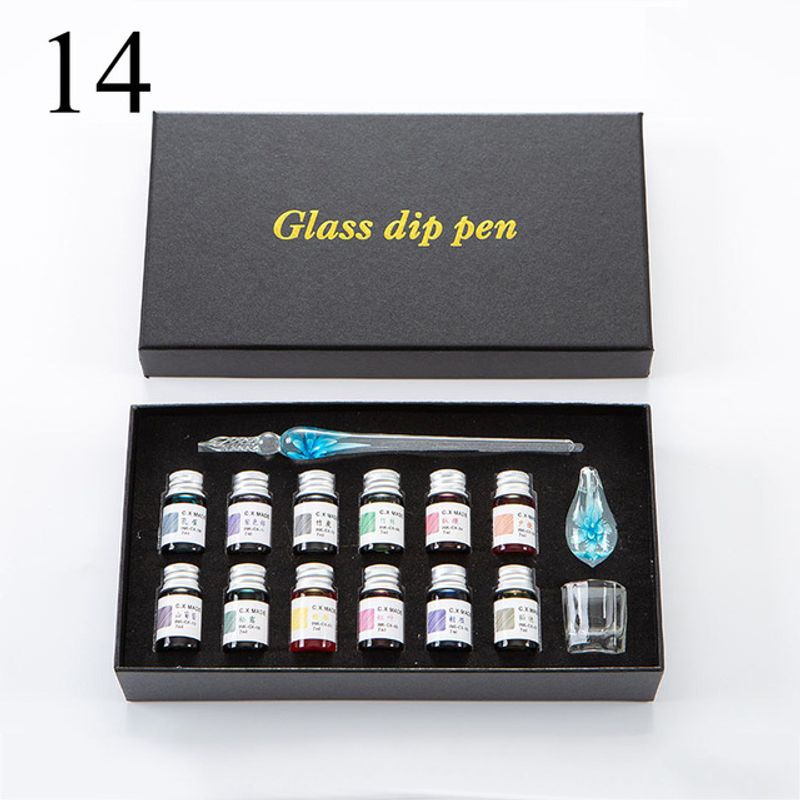 Highergo 3/7/15 Pcs 3D Flower Glass Pen Set Handmade Crystal Dip Pen With Ink For Drawing Calligraphy Kids Gifts Stationery