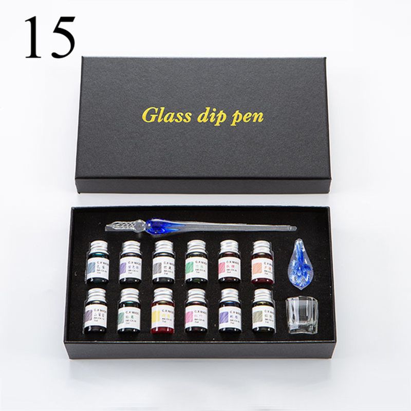 Highergo 3/7/15 Pcs 3D Flower Glass Pen Set Crystal Handmade Dip Pen Writing Drawing Calligraphy Gifts Stationery Art Supplies