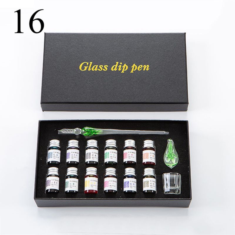 Highergo 3/7/15 Pcs 3D Flower Glass Pen Set Handmade Crystal Dip Pen With Ink For Drawing Calligraphy Kids Gifts Stationery