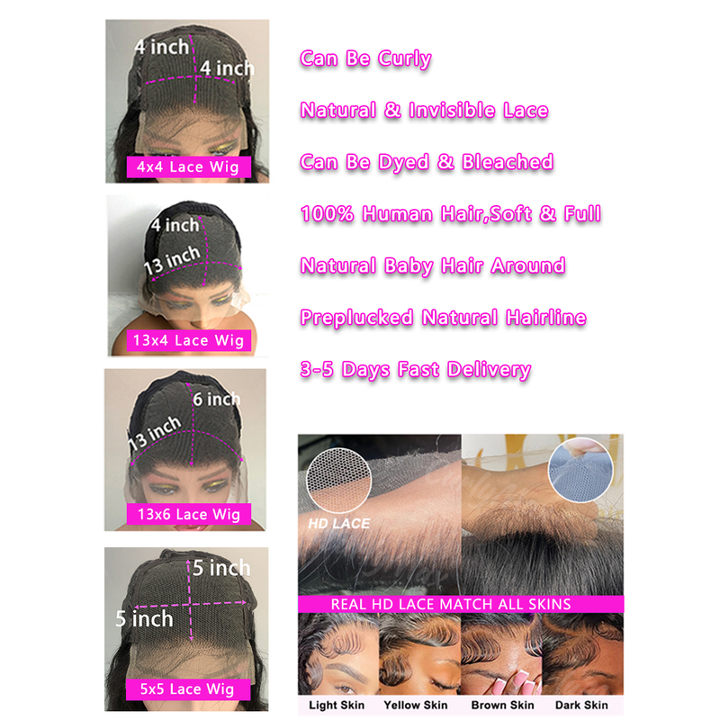 Lace size:13x4 13x6 4x4 5x5 (if you want 360 please contact us)
