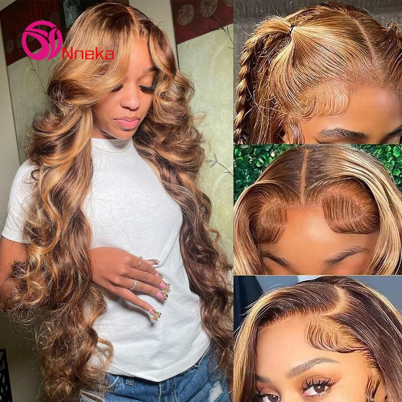 Highlight Wig Human Hair Body Wave Human Hair Wigs 13x4 13x6 Hd Lace Frontal Wig 4/27 Honey Blonde Ombre Colored Wigs For Women