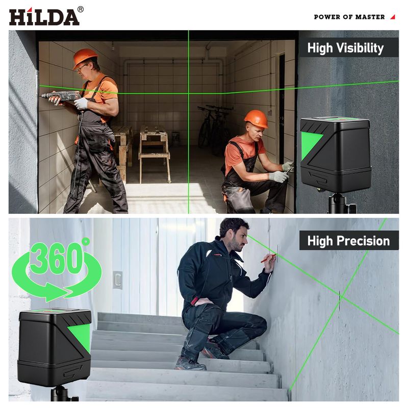 HILDA 2 Lines Laser Level Self Levelling Green Beams Laser Horizontal Vertical Cross Line Mini Laser Level