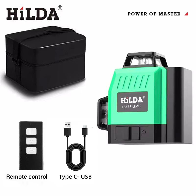 HILDA 3D/4D 12/16 Lines Laser Level with USB Charging Cable and Remote Control Rechargeable Self-leveling 360 Green Line level