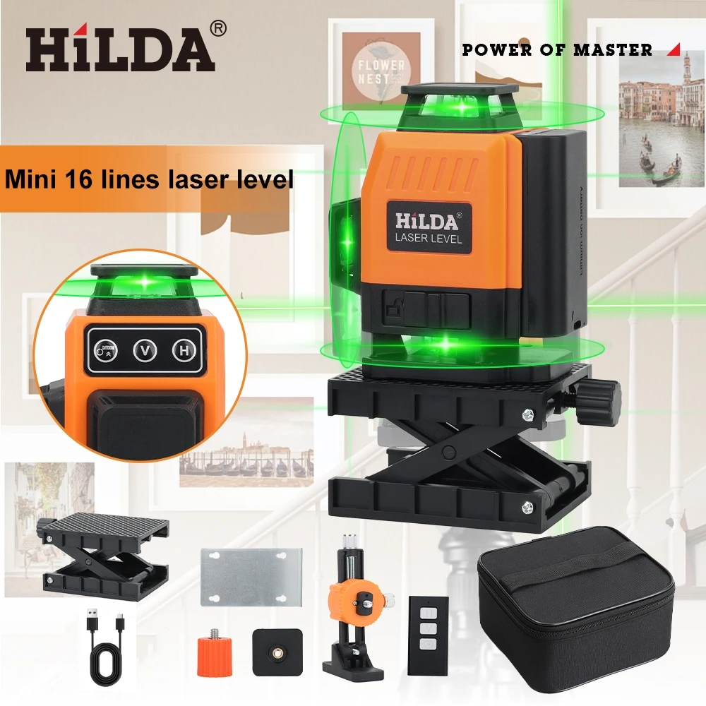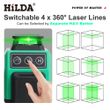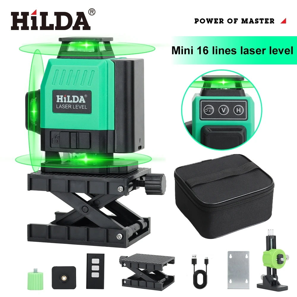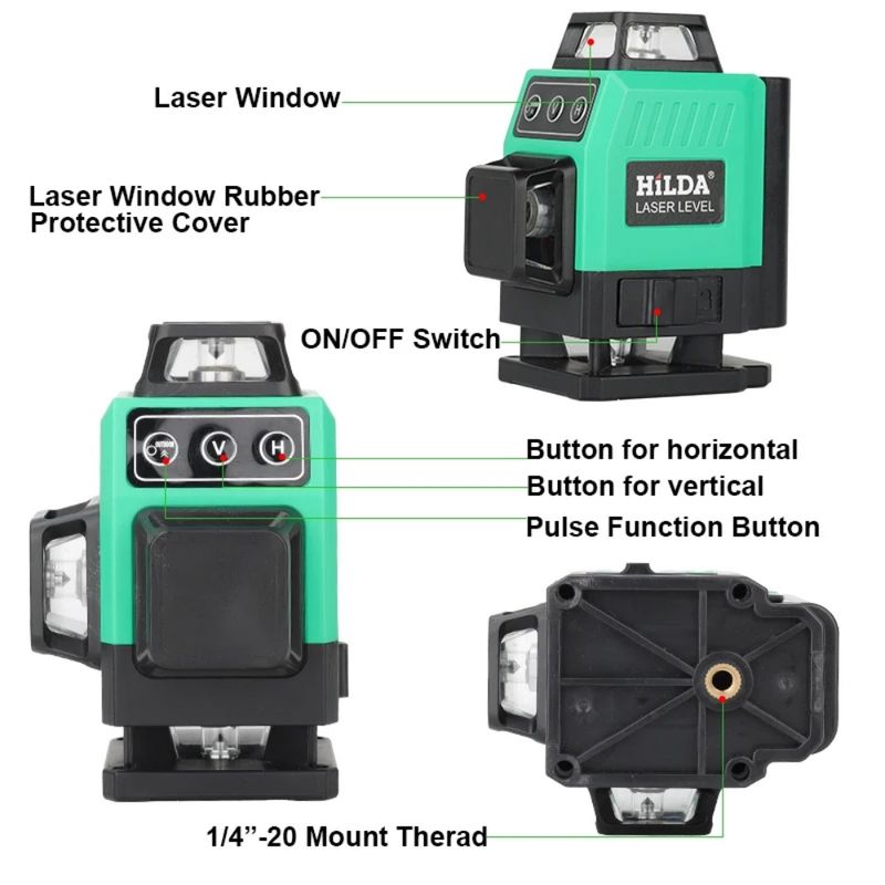 Widely used: Green cross line laser horizontal self leveling can be switched separately through buttons or remote control. The laser level 360 self leveling is equipped with a magnetic bracket, mini tripod, lifting base, and 3/8-inch adapter, expanding the use of the tool. It can be attached to tripods, floor tiles, wall stickers, and ceilings.