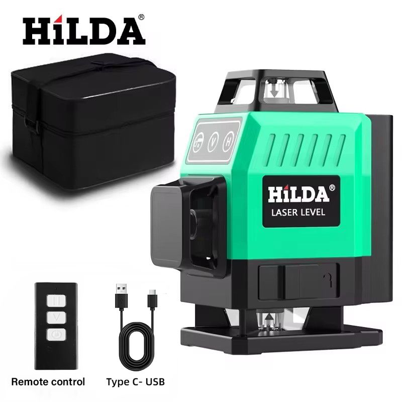 HILDA 3D/4D 12/16 Lines Laser Level with USB Charging Cable and Remote Control Rechargeable Self-leveling 360 Green Line level