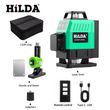 HILDA 3D/4D 12/16 Lines Laser Level with USB Charging Cable and Remote Control Rechargeable Self-leveling 360 Green Line level