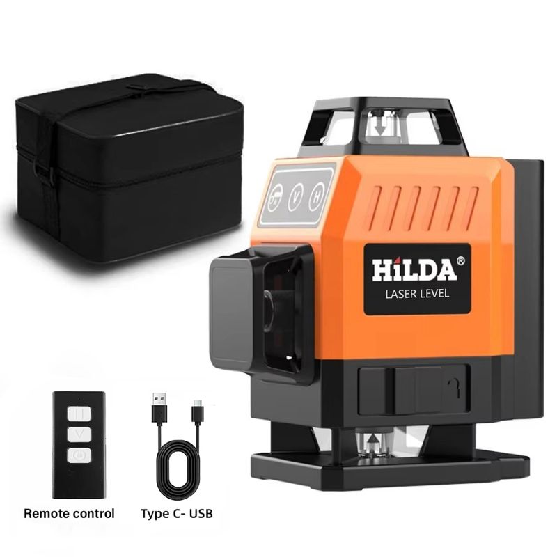 HILDA 3D/4D 12/16 Lines Laser Level with USB Charging Cable and Remote Control Rechargeable Self-leveling 360 Green Line level
