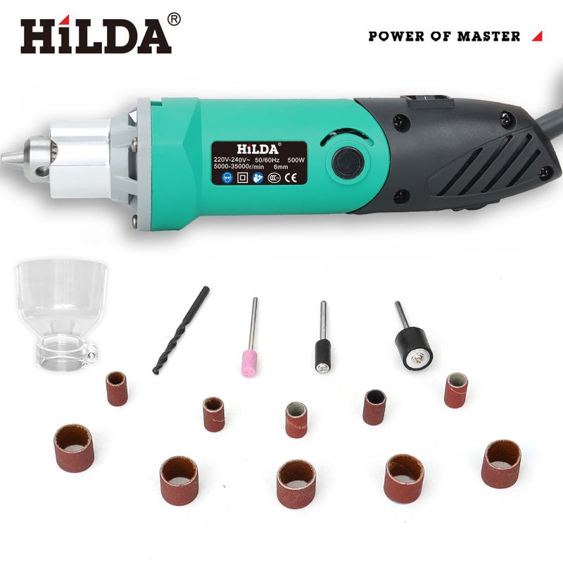 HILDA 500W Green Engraver Electric Drill 6-Position Variable Speed High-Power Woodworking Rotary Tools Set Grinder Polishing