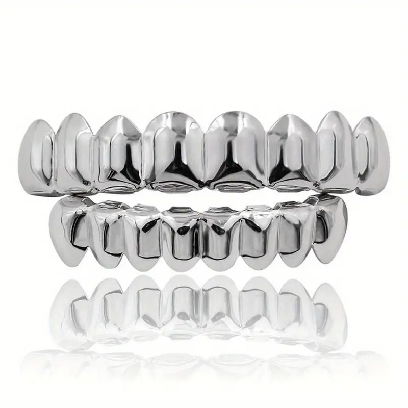 Hip Hop 6/6 Teeth Grills Hip Hop 14K Gold Plated Tooth Caps Decor Braces Punk Cosplay Party Braces For Fashion Women Men Jewelry