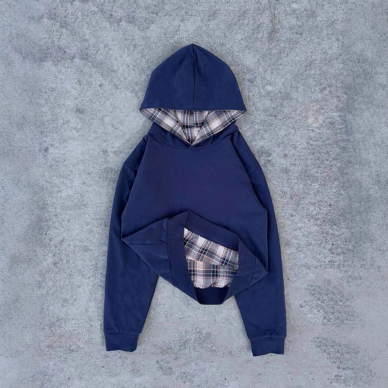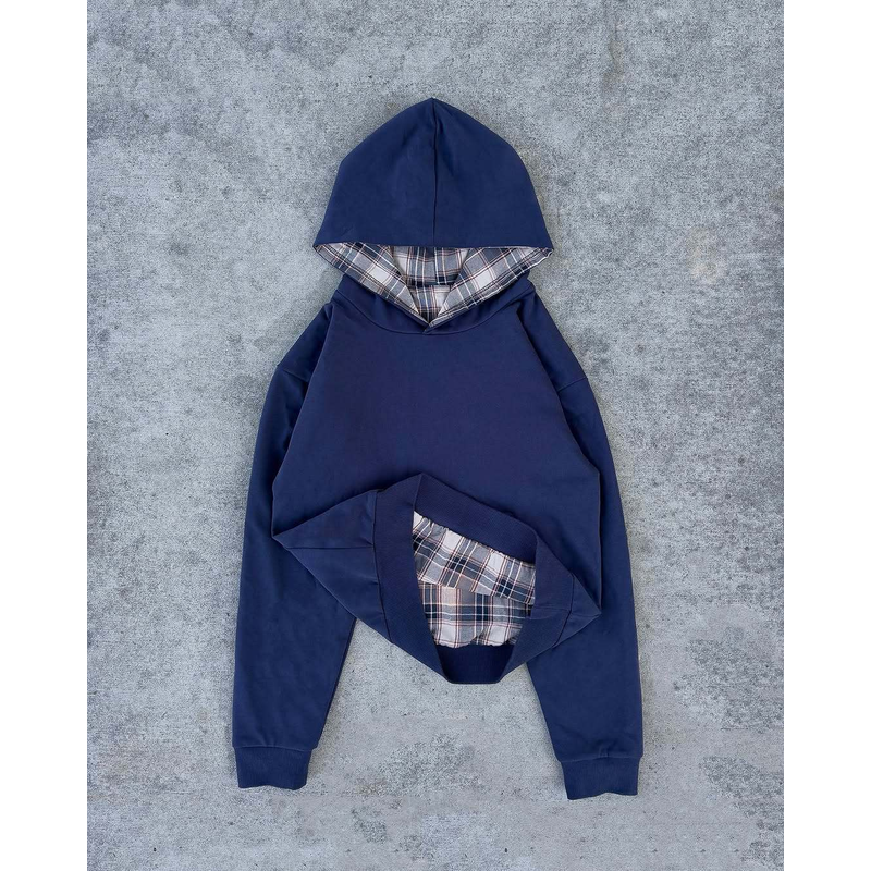 Hip Hop Double-sided Retro Plaid Casual Sweater Dark Blue XL