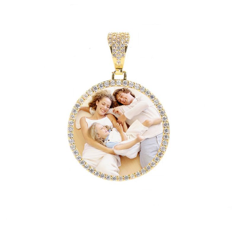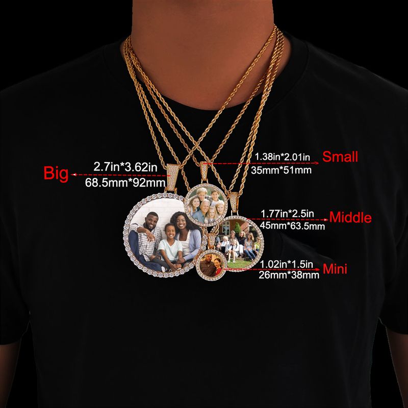 Hip Hop Jewelry Bling CZ Memorial Picture Frames Necklace Personalization Photo Custom 26/35/45/68.5MM Circle Medallions Pendant