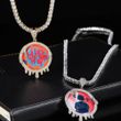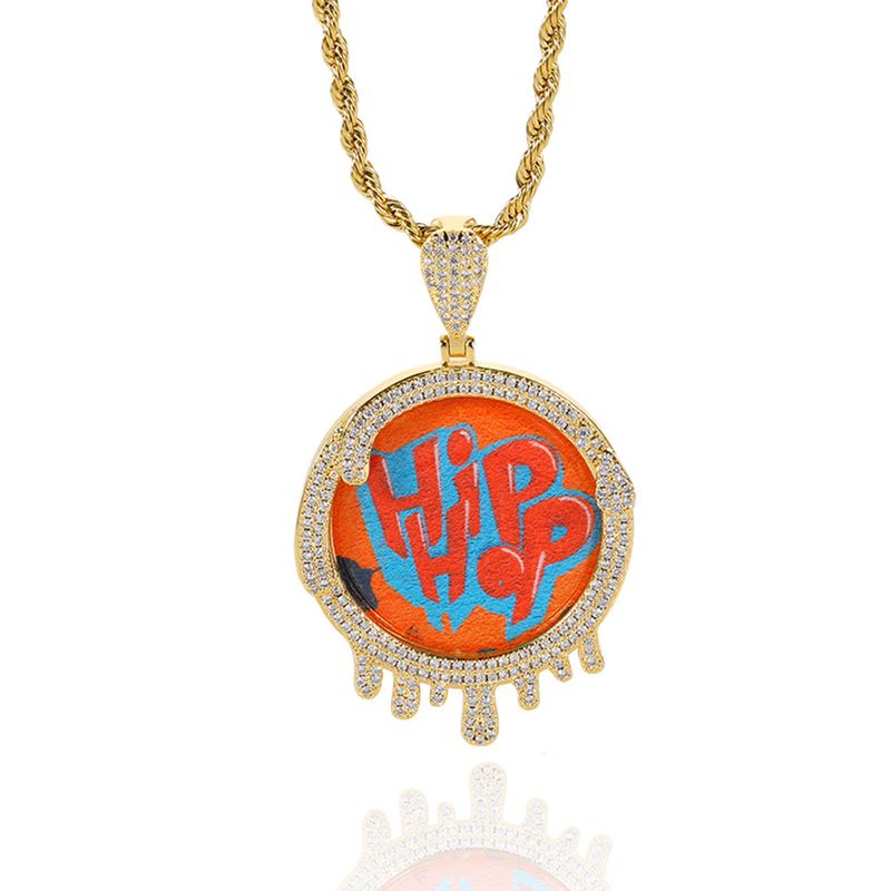 Hip Hop Jewelry Round Water Drop Photo Frame Pendant Micro-inlaid Zircon Gold 18inchx4cm tennis chain