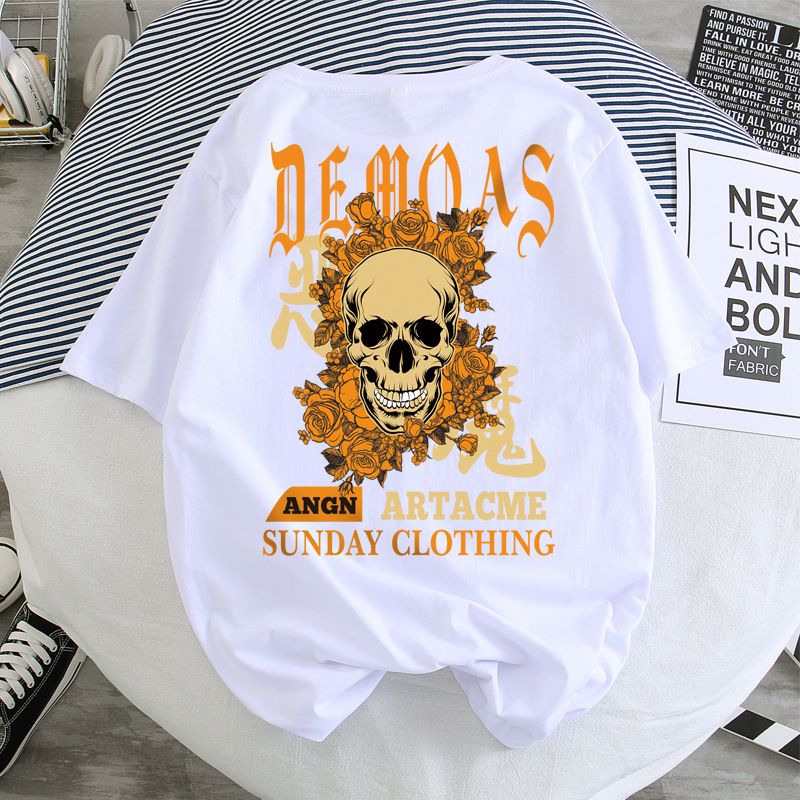 Hip-Hop Short-Sleeved Men'S T-Shirt Hong Kong Style Loose Five-Point Sleeve Half Sleeve Men And Women Couples C XL