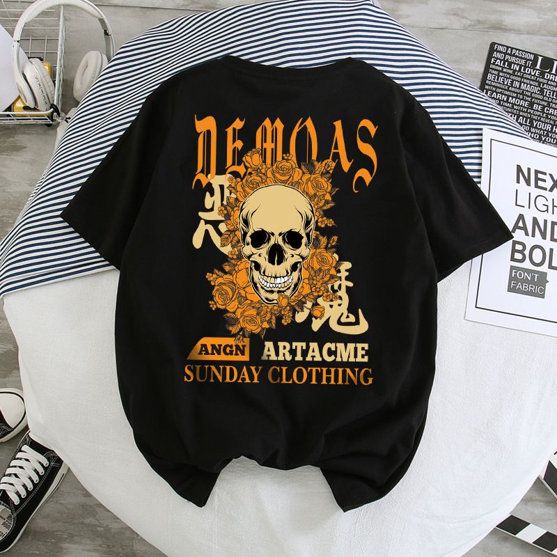 Hip-Hop Short-Sleeved Men'S T-Shirt Hong Kong Style Loose Five-Point Sleeve Half Sleeve Men And Women Couples D 2XL