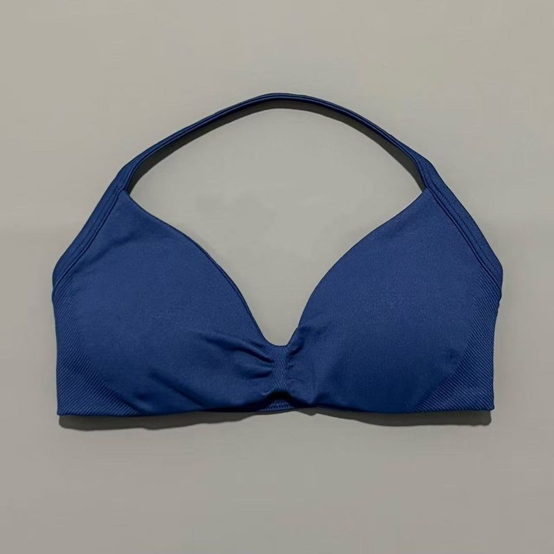 HISTELLO Sports Strappy Bra Df Solid Color Women Seamless Yoga Underwear Fitness Workout Halter Top Running Gym Sports Bra