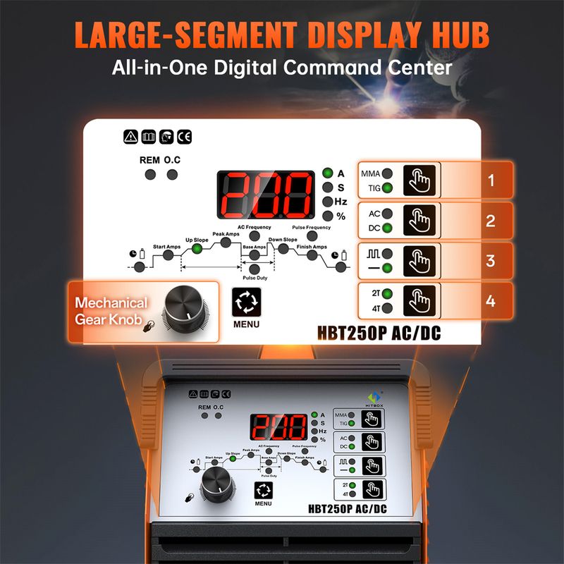 HITBOX HBT250P AC/DC Aluminium Tig Welding Machine IGBT Inverter 2T/4T HF TIG/MMA ARC Stick Argon Precise Digital Pulse Welder