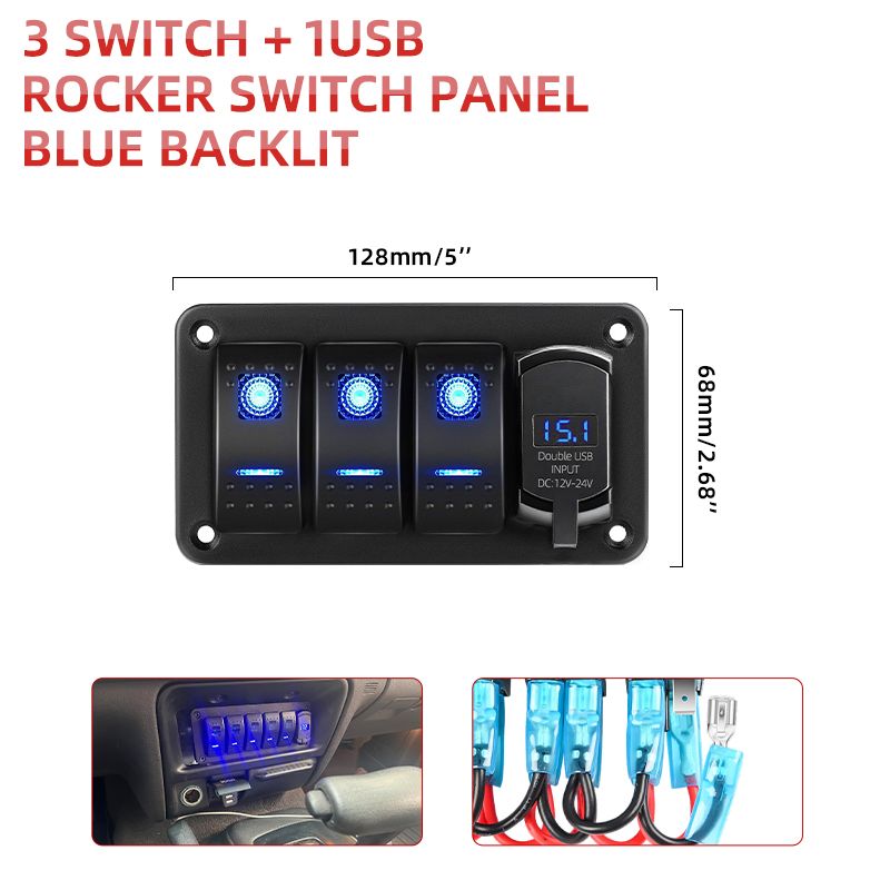 HL 2/3/4/5+1 Gang Rocker Switch Panel Pre-Wired On/Off Switch Panel Dual USB Charger for Marine off-road use Jeep12V 24V