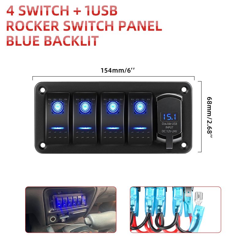 HL 2/3/4/5+1 Gang Rocker Switch Panel Pre-Wired On/Off Switch Panel Dual USB Charger for Marine off-road use Jeep12V 24V