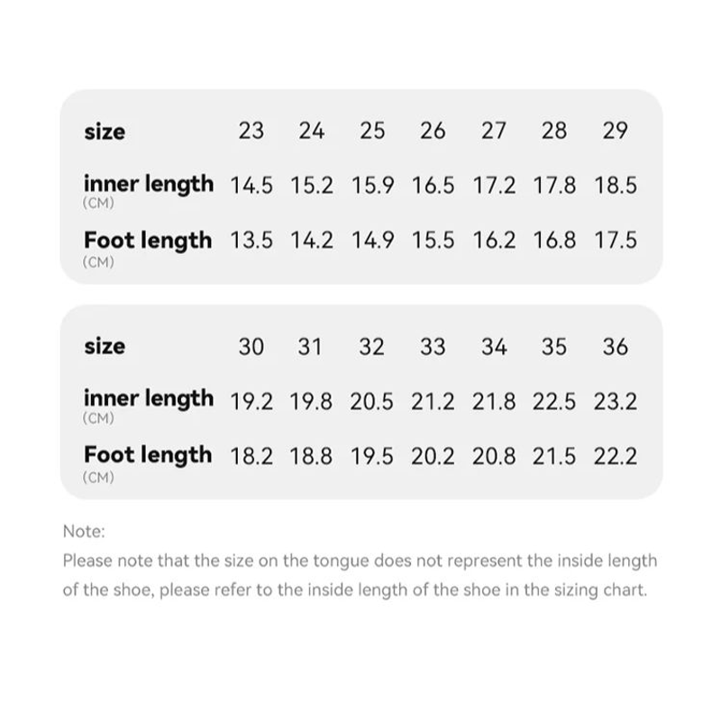 The size on the tongue is only the international size, it does not represent the internal length of the shoe, please refer to the size chart for the internal length of the shoe.