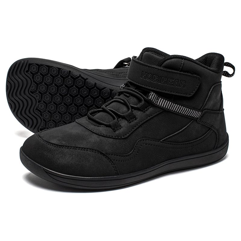 HOBIBEAR Kids Mid-Barefoot Shoes Big/Kid Wide Toe Box Zero Drop Artificial Leather Hook-Loop Outdoor Boots
