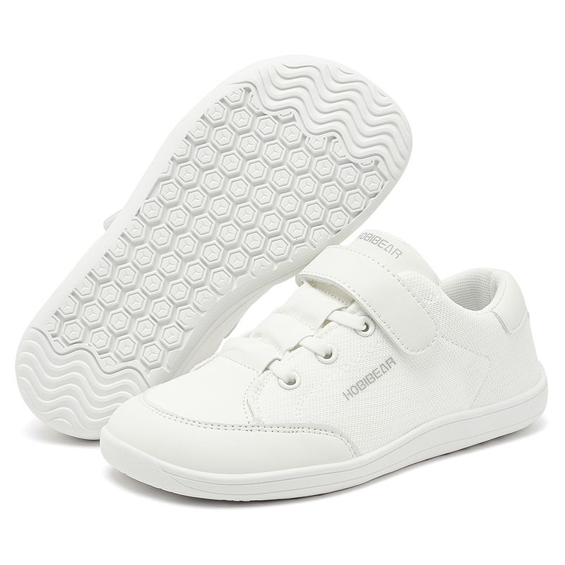HOBIBEAR Kids Wide Toe Barefoot Shoes Boys Girls Minimalist Sneakers Lightweight Hook Loop Mesh Artificial Leather Shoes