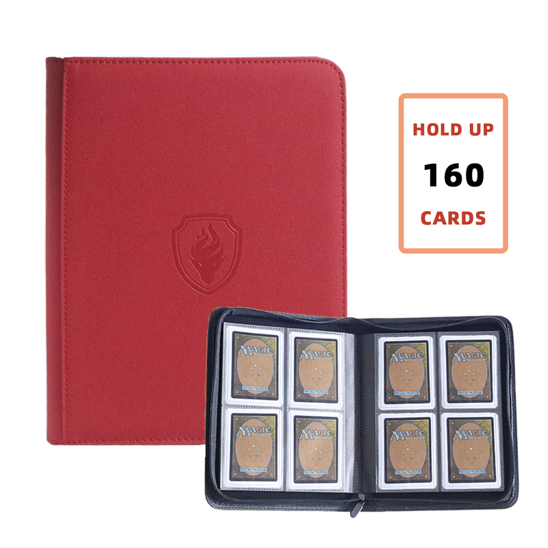 Holds 160 Cards|Trading Card Binder for 3”×4”Cards | 4-Pocket Double-sided Album |PU Leather Zipper Folder for TCG/Sports Cards