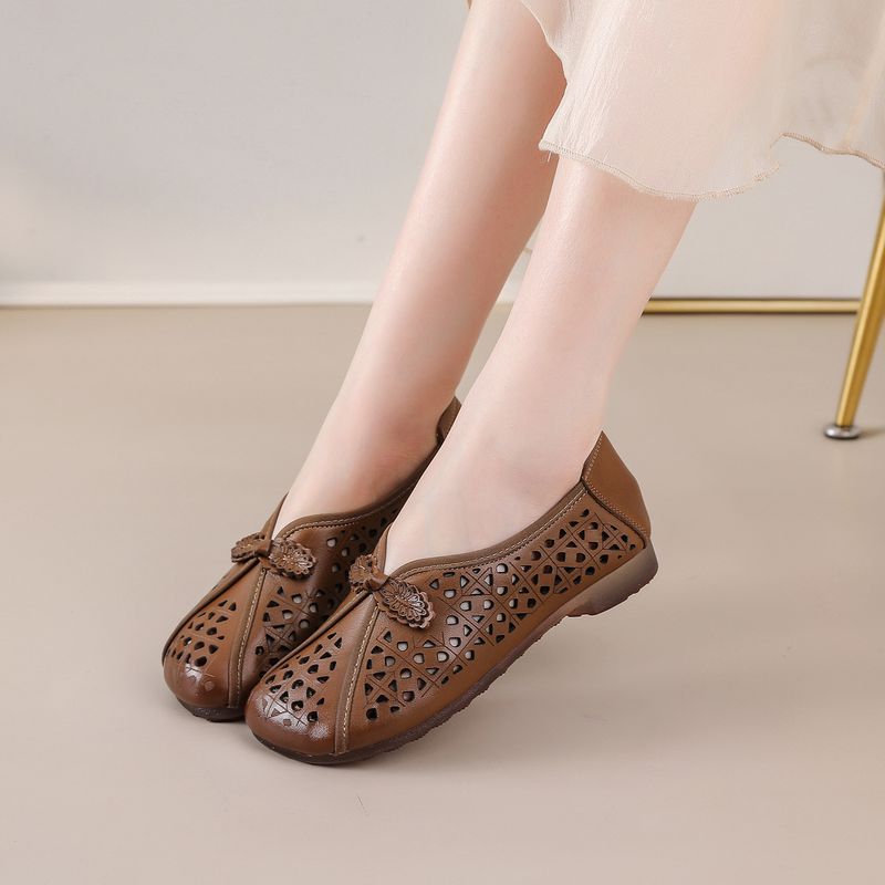 Hole-Top Shoes Women's 2026 Spring/Summer New Style Flat Anti-Slip Hollow Breathable Sandals Soft Genuine Leather Slip-On Lazy S