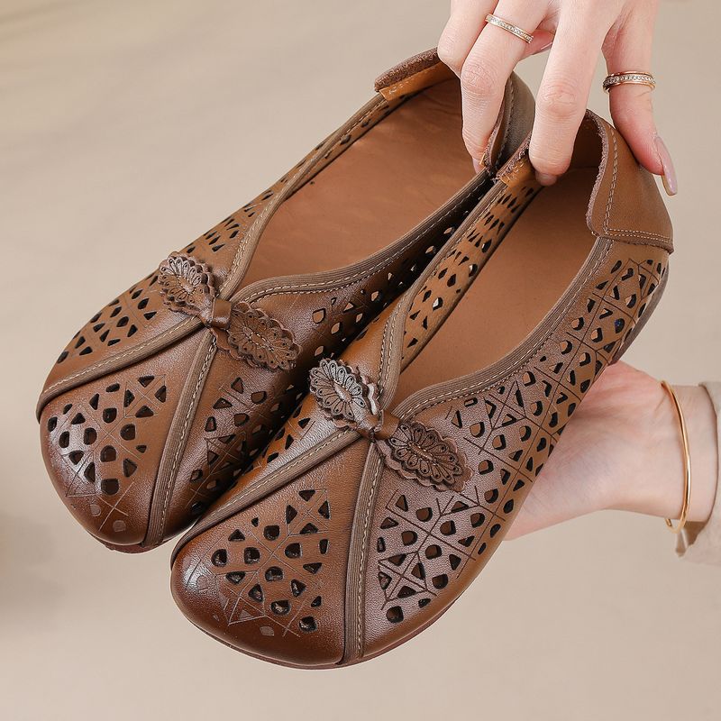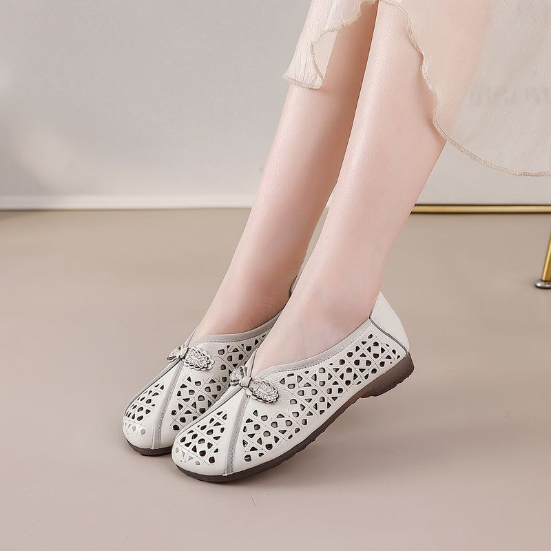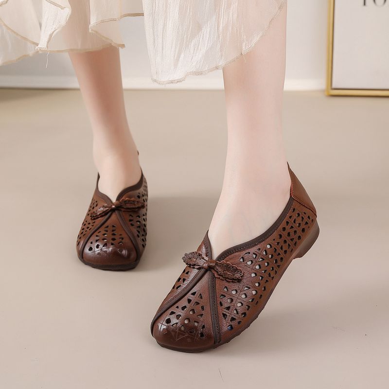 Hole-Top Shoes Women's 2026 Spring/Summer New Style Flat Anti-Slip Hollow Breathable Sandals Soft Genuine Leather Slip-On Lazy S