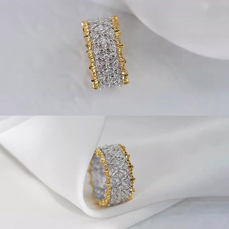 Hollow Color Zircon Affordable Luxury Fashion High-grade Ring Female Gold And Silver No 9