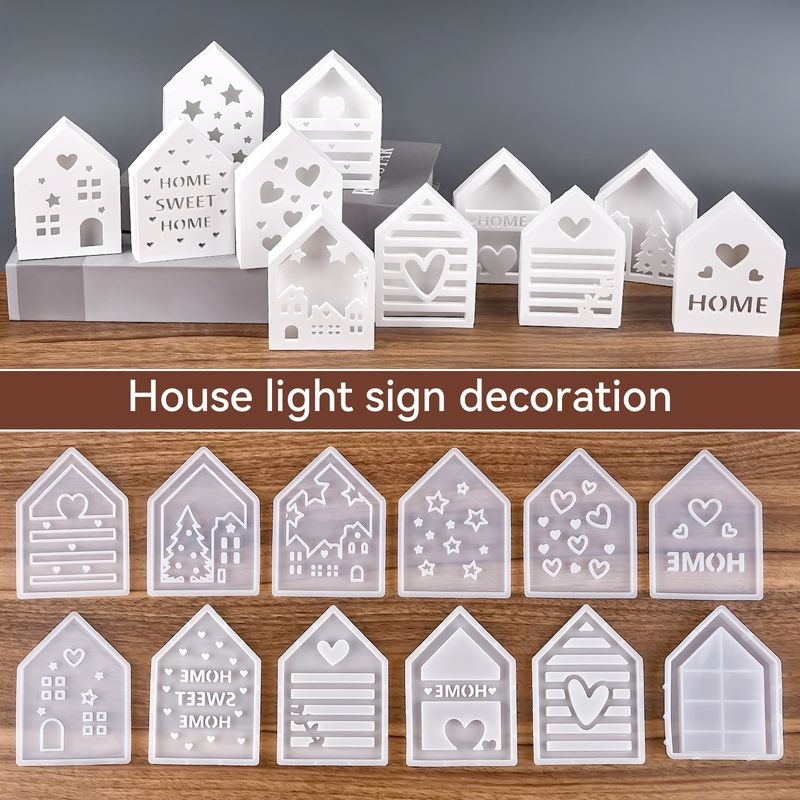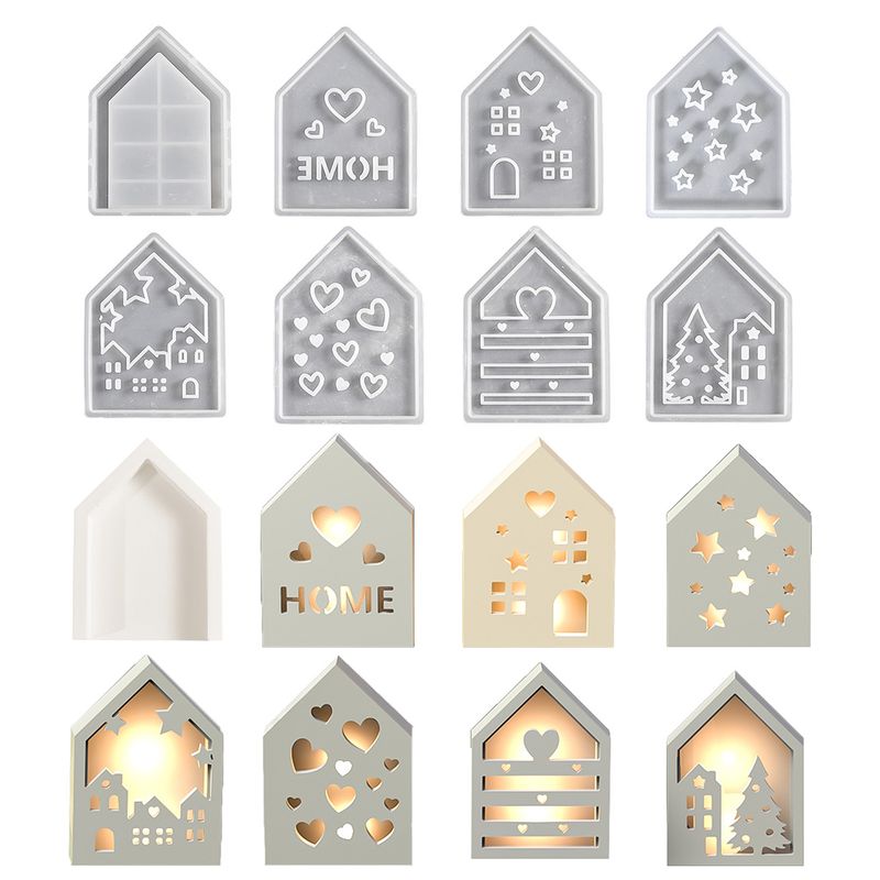 Hollow House Silicone Mold Love Christmas Tree Star Panel Base Decoration DIY Plaster Cement Epoxy Resin Mold Home Ornament