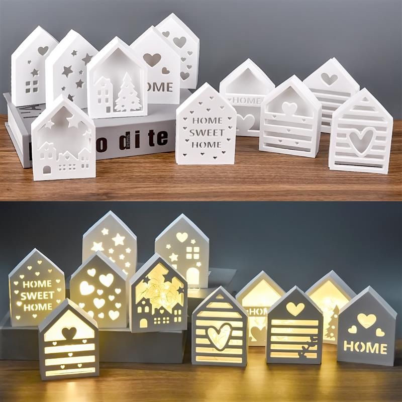 Hollow House Silicone Mold Love Christmas Tree Star Panel Base Decoration DIY Plaster Cement Epoxy Resin Mold Home Ornament
