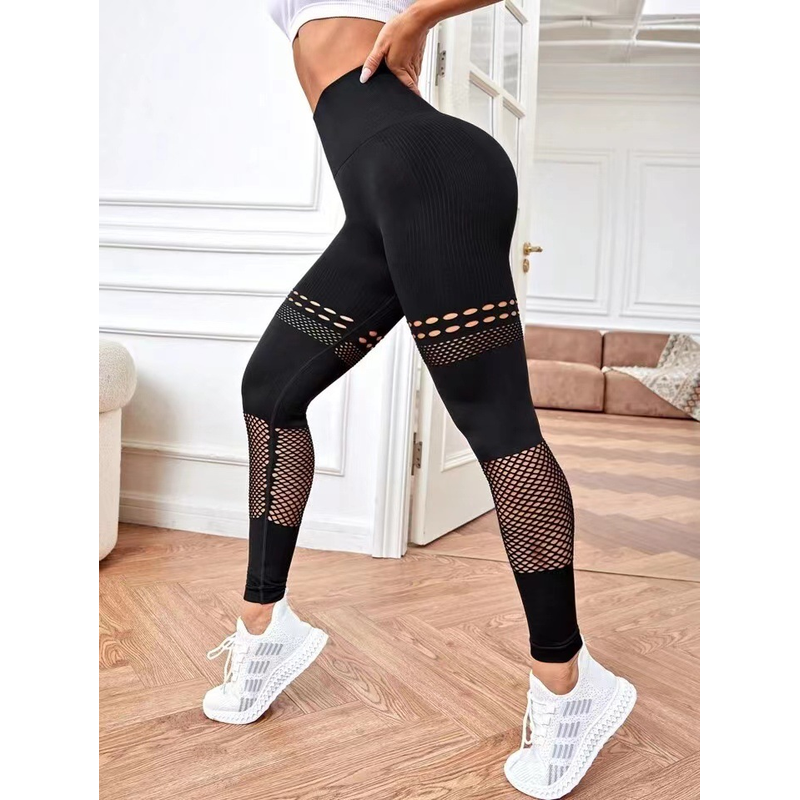 Hollow Seamless Yoga Pants Training Fitness Dark Green S