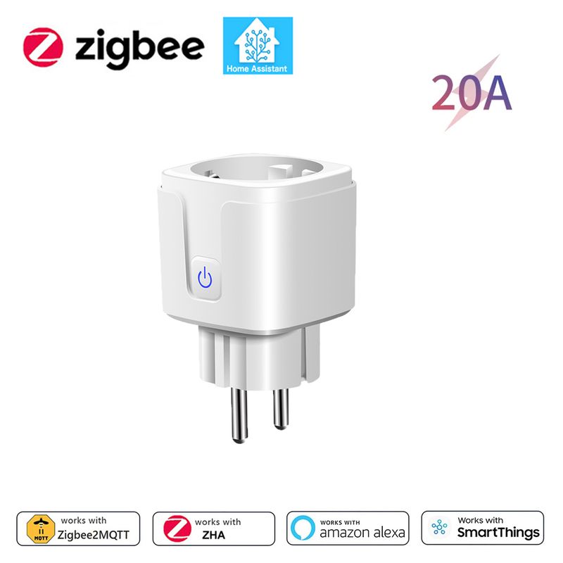 Zigbee EU Smart Plug 20A/16A Smart Socket With Power Monitoring Timing Function APP Control Works with Alexa Home Assistant Z2M