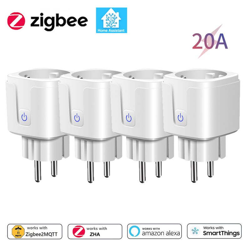 Home Assistant Zigbee EU Smart Plug 20A/16A Smart Socket With Power Monitoring Timing Function APP Control Works with Alexa Z2M