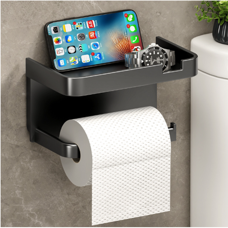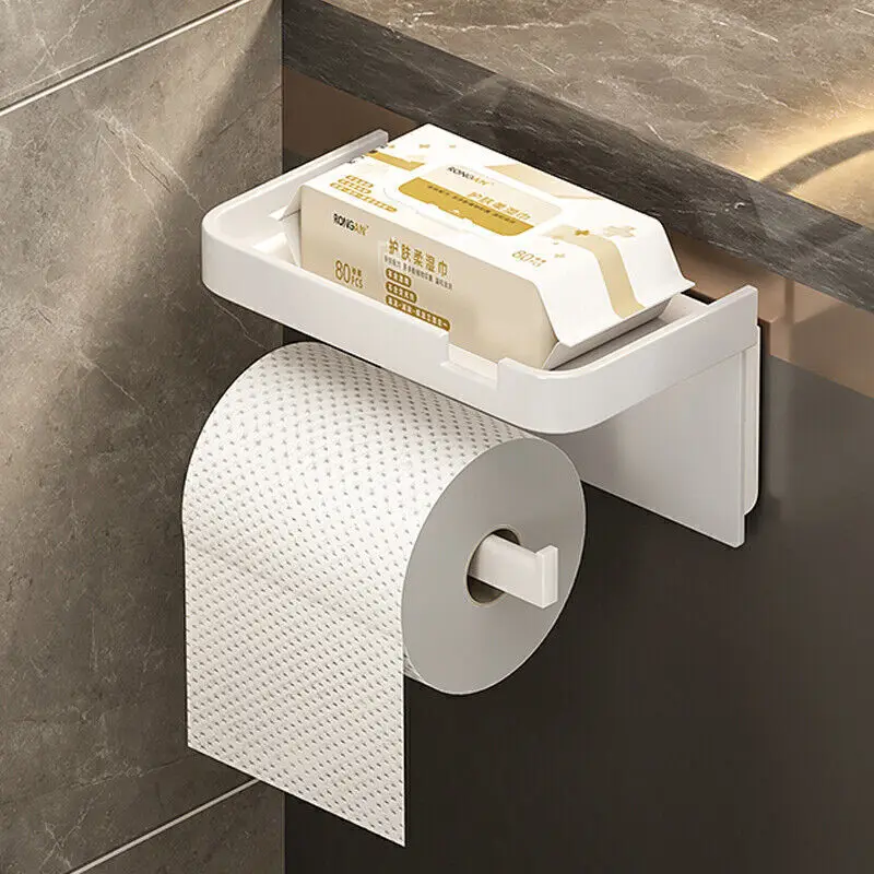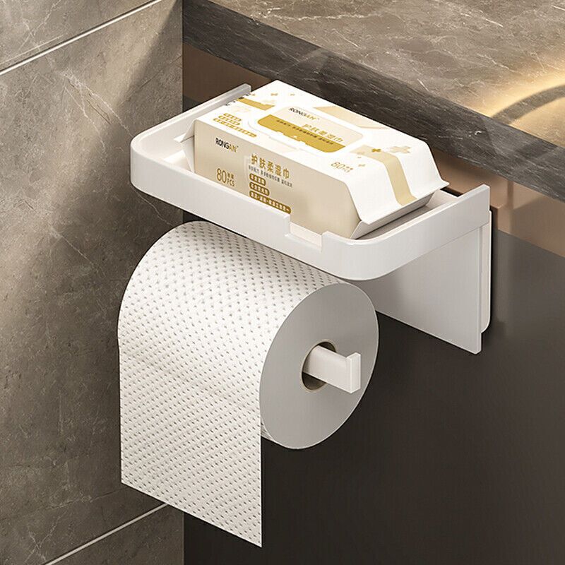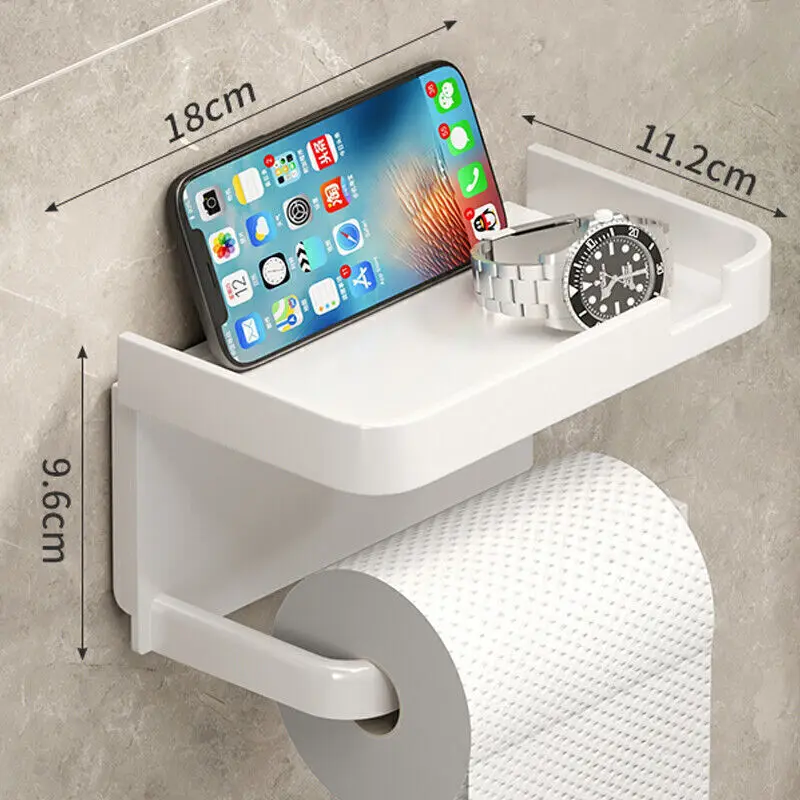 Home Bathroom Wall Mounted Toilet Roll Paper Holder Shelf Phone Stand Organizer