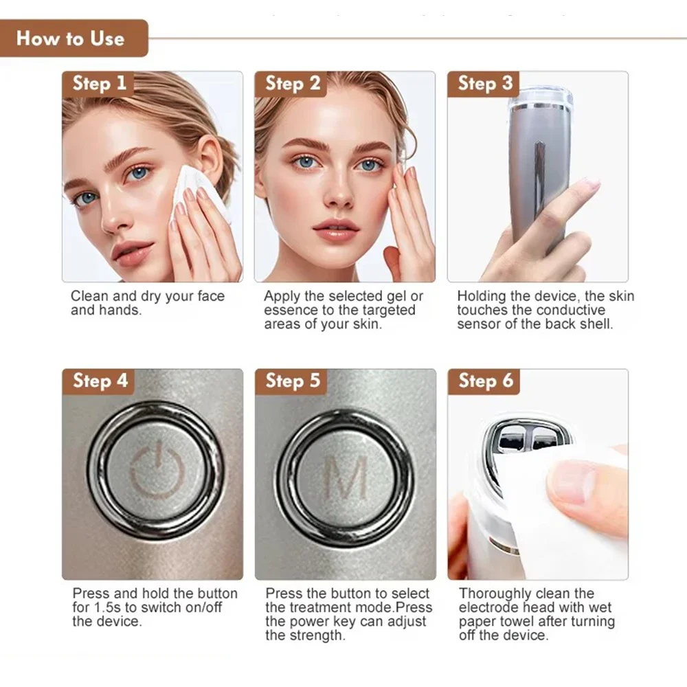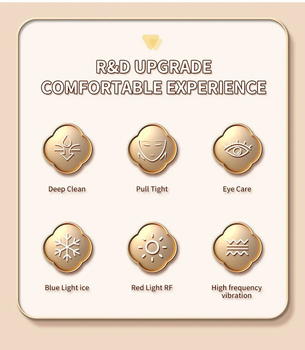 3. RADIO FREOUENCY VIBRATIONDEEP CLEANSING NOURISHESBRIGHTENS THE SKIN:Using the attraction of positive and negative electrodes of ions.the dirt and makeup removal residue in pores can be derived.