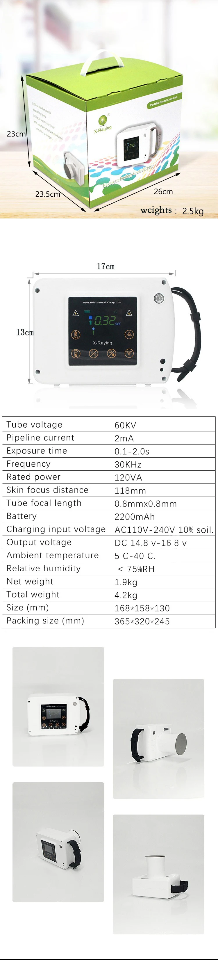 The device is DC high frequency portable dental x-ray unit,small,light and nearly no radiation.